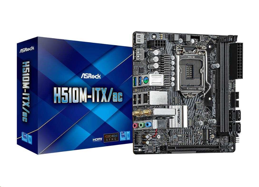 ASRock MB Sc LGA1200 H510M-ITX/AC, Intel H510, 2xDDR4, 1xDP, 1xHDMI, WI-FI, mini-ITX