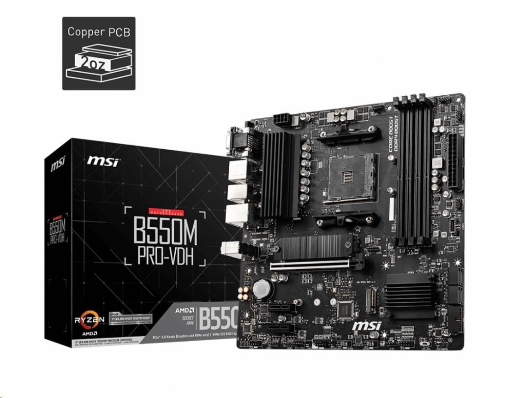 MSI MB Sc AM4 B550M PRO-VDH, AMD B550, 4xDDR4, 1xDP, 1xHDMI, 1xVGA, mATX