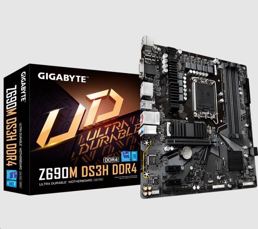 Z690M DS3H DDR4Intel Z690 Motherboard with 6+2+1 Hybrid Phases Digital VRM Design, 2 x PCIe 4.0 M.2 with Thermal Guard, 2.5GbE LAN, Rear USB 3.2 Gen 2 Type-C, Q-Flash Plus?Supports 12th Gen Intel Core™ Series Processors?Dual Channel Non-ECC Unbuffered DDR4, 4 DIMMs?6+2+1 Hybrid Digital VRM...