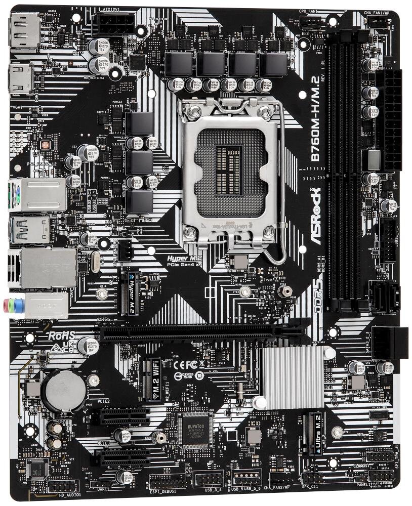 ASRock B760M-H/M.2 / Intel B760 / LGA1700 / 2x DDR5 / 2x M.2 / HDMI / DP / USB-C / mATX