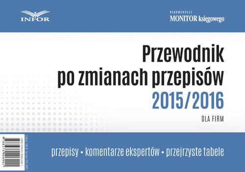 Komplet informacji o zmianach przepisów z zakresu podatków, rachunkowości, prawa pracy, ubezpieczeń oraz prawa gospodarczego znowelizowanych na przełomie 2015/2016 roku. W jednym miejscu zostały zebrane wszystkie informacje o nowelizacjach przepisów istotnych dla rozliczeń firmy....