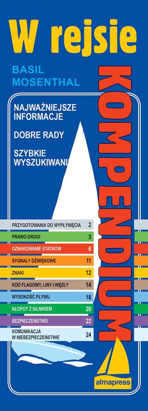 Najważniejsze informacje, podane w skrótowej formie, przydatne każdemu kto wybiera się w rejs morski. Poszczególne rozdziały, bogato ilustrowane, poświęcone są m.in. przygotowaniu do wypłynięcia, oznakowaniu statków, prawu drogi, pływom, bezpieczeństwu, łączności na morzu. Nieduży format, spiralna oprawa i laminowane strony sprawiają, że książka może być zawsze pod ręką w kokpicie.