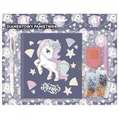 Zestaw składa się z pamiętnika, długopisu 3 kolorowego (czarny, czerwony, niebieski), plastikowego rylca do nakładania diamentów, wosku, tacki oraz ponad 500 diamentów w 5 różnych kolorach. Poszczególne elementy okładki mogą zostać samodzielnie ozdobione diamentami. Pamiętnik posiada kłódkę oraz...