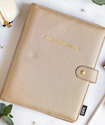 Zvýšte svoju produktivitu s naším plánovačom produktivity krúžkových blokov formátu A5 v béžovej farbe. Efektívne stanovujte priority úloh, lepšie si spravujte čas a dosahujte svoje ciele rýchlo pomocou vedecky overených metód. Je vyrobený z prémiovej umelej kože, má všestranné plánovacie vložky a držiak na karty.