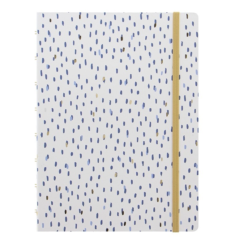 Filofax Notebooky nabízejí jednoduchost poznámkového bloku spojenou s volností personalizace. Zápisník má pevné laminované kartonové desky s detaily ze zlaté fólie a vzorovanou vnitřní stranu desek. Zlatá dvoudrátová kroužková vazba umožňuje jednoduše přidávat, odebrat nebo přemístit jednotlivé...
