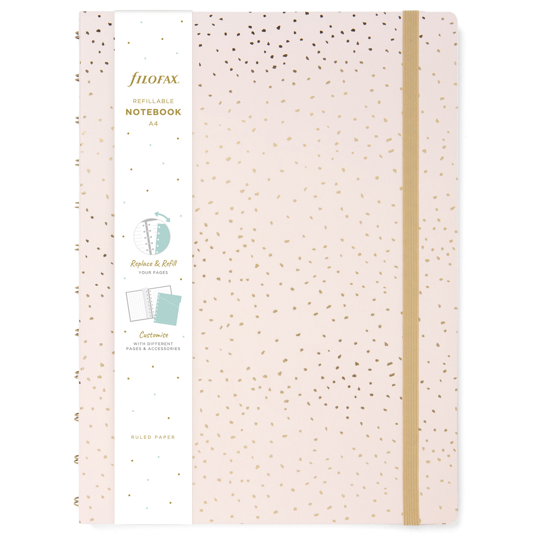 S tímto plnitelným zápisníkem Filofax Notebookem A4 z naší kolekce Confetti v provedení Charcoal bude každý Váš den mimořádný. Zápisník obsahuje pevné laminované kartonové desky s detaily ze zlaté fólie a vzorovanou vnitřní stranou desek. Jeho zlatá dvoudrátovávazba umožňuje Notebooku ležet úplně...