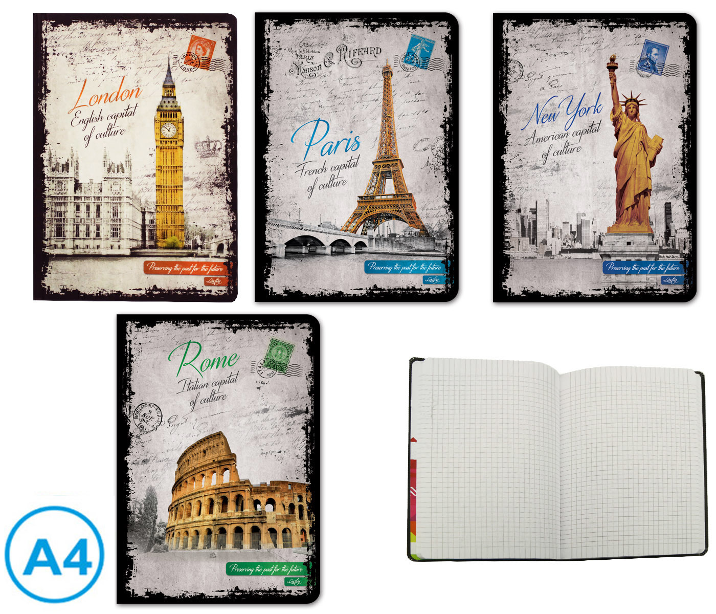 záznamová kniha je vyrobená z kvalitního bezdřevého papíru, šitá- obálka je z tvrdého kartónu, potištěná různými motivy a potažená laminem- formát: A4- počet listů: 96 - vzor: čtvereček- mix motivů prečítať celé