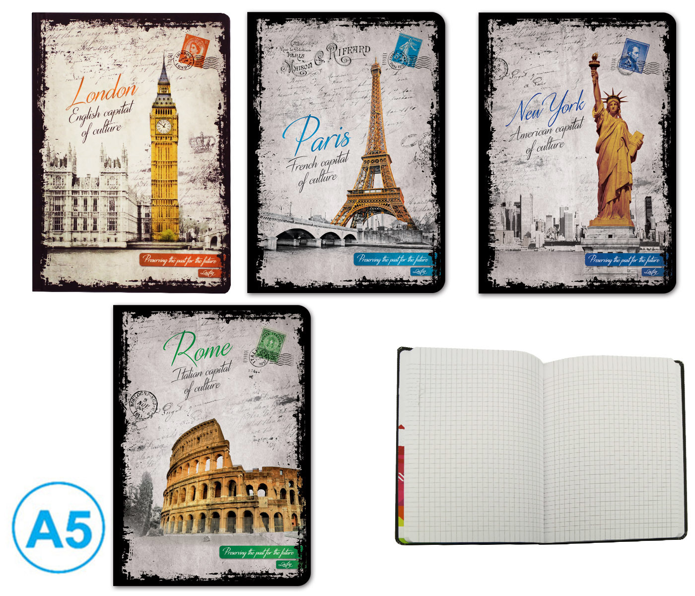 záznamová kniha je vyrobená z kvalitního bezdřevého papíru, šitá- obálka je z tvrdého kartónu, potištěná různými motivy a potažená laminem- formát: A5- počet listů: 100 - vzor: čtvereček- mix motivů prečítať celé