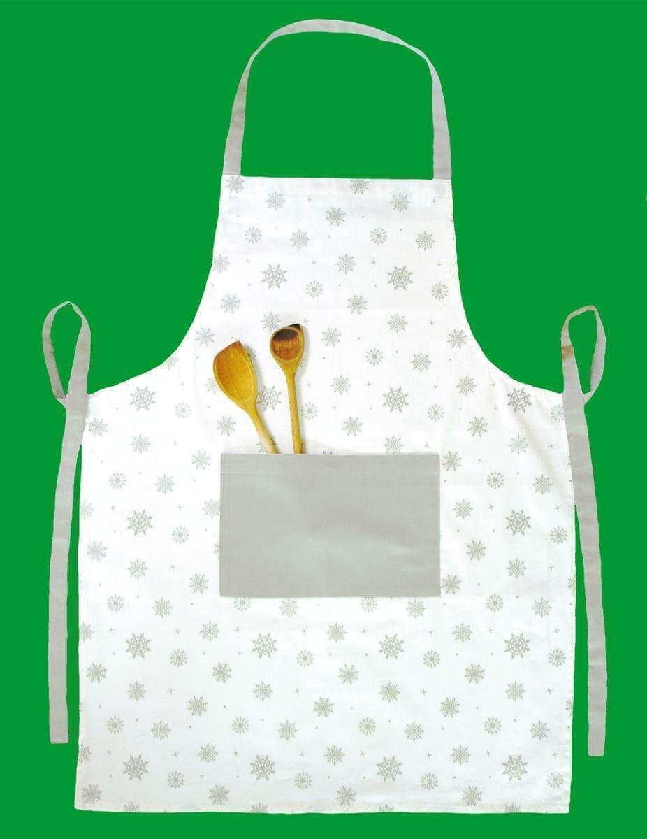 Příjemná a zároveň praktická zástěra z přírodního materiálu v dezénu vloček Vám pomůže ochránit oděv a zároveň díky vkusně navrženému vzoru zůstanete stále moderní a atraktivní.