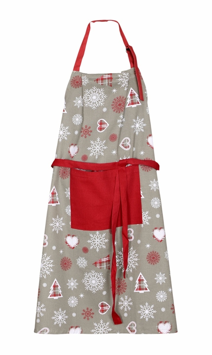 Zástěra vánoční kuchyňská, Vločky 3036, srdce