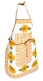 Praktická zástěra v dekoru slunečnic a kára působí příjemným, veselým dojmem.