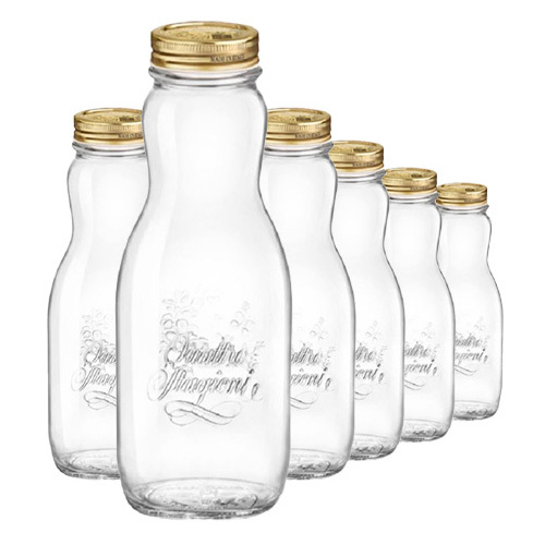 Zavařovací lahve Quattro Stagioni uchovají díky šroubovacímu uzávěru bezpečně potraviny po celý rok. Proto se sklenice hodí pro skladování potravin, ke kterým se nesmí dostat vzduch, např. pro koření, mouku, müsli, bylinky nebo cukr, ale také je můžete využít k zavařování ovoce, zeleniny nebo džemů. Sklenice jsou zdobené reliéfem, s italský dekorem na uzávěru.Balení obsahuje: 6 ks x 1 l.Rozměry: 17,2 x 5,6 cm.Barva: čiré sklo.