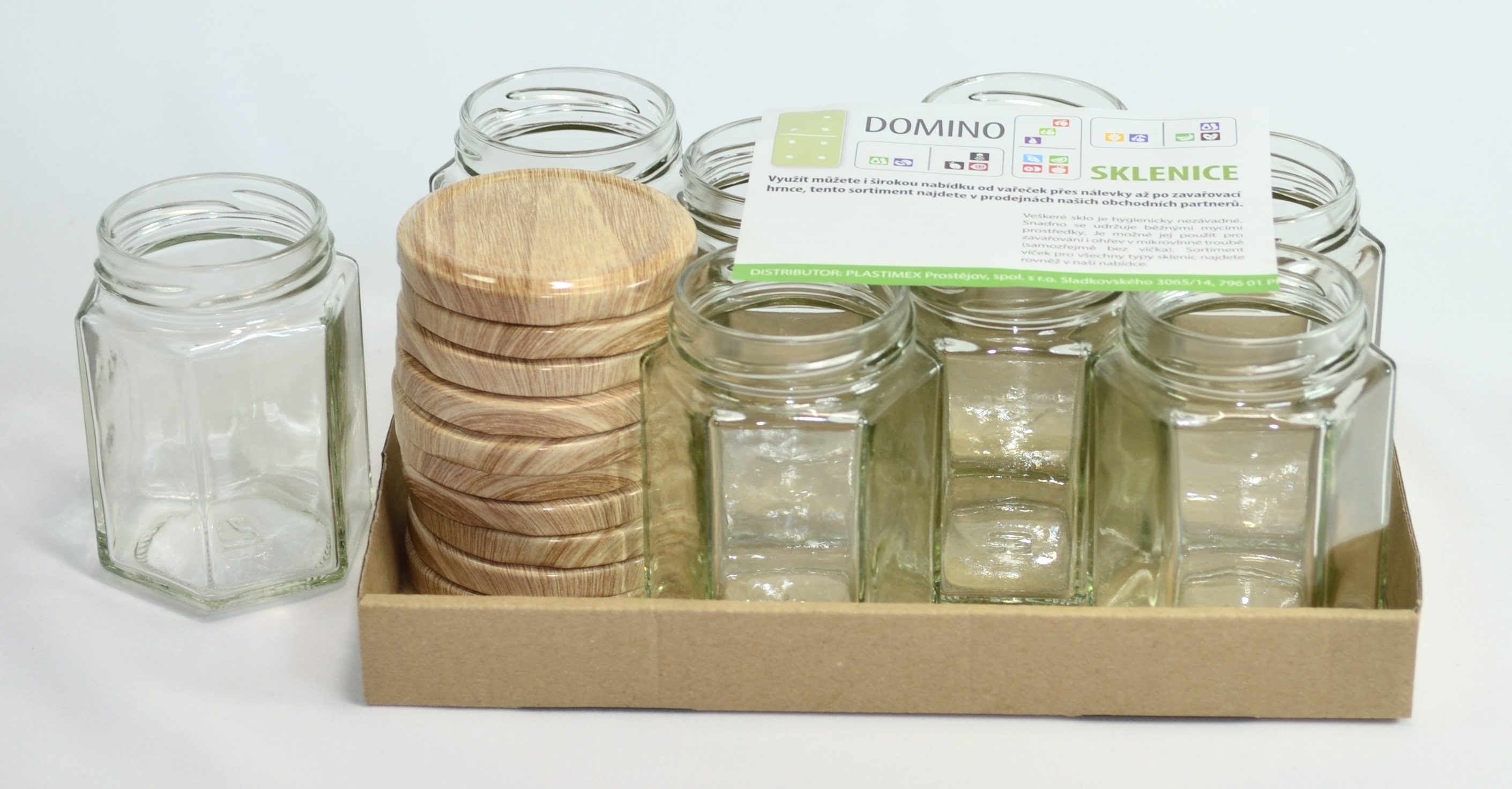 sklen.zavař. 195ml- 7ks-ŠESTIHR,+10ks víč.dřevo-TO58
