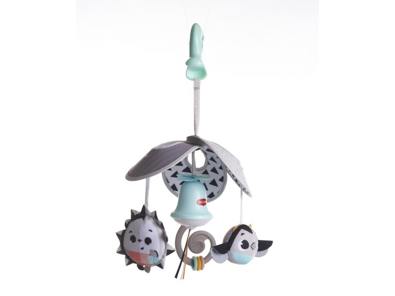 Závěsná hračka Tiny Love zajistí zábavu pro vaše dítě na cestách. Díky plastovému klipu ji lze libovolně zavěsit na autosedačku, kočárek apod. Zvoneček při pohybu jemně cinká. Zavěšené hračky chrastí a šustí. Bezpečné zrcátko, výrazné barvy a různorodé tvary a textury udrží pozornost dítěte.