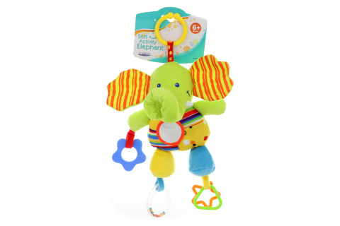 Plyšový závěsný sloník s různými aktivitami (kroužky, chrastítko, zrcátko, barevné vzory, šustící látka a další). Rozměry balení cca 39 x 24 x 15 cm. Rozměry sloníka cca 30 x 24 cm. Věk 6 měsíců+ prečítať celé