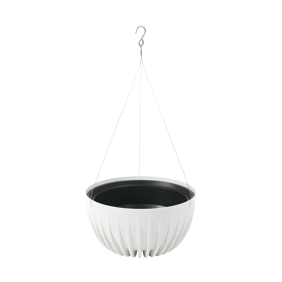 Plastová mísa Mira ECO recycled z recyklovaného plastu. s lankem na zavěšení. Moderní mísa s žebrováním. Součástí květináče je černý plastový vklad sloužící k odtoku přebytečné vody pod tento vklad.