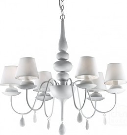 Moderní závěsné svítidlo BLANCHE SP6 BIANCO z řady Ideal Lux v kovovém provedení zavěšeném na řetězu, u kterého lze nastavit výšku zavěšení. Z kovové konstrukce sněhově bílé barvy vede 6 ramen, na kterých jsou umístěné malé lampičky jejichž stínítka jsou z nehořlavého materiálu PVC. Za stínítky...