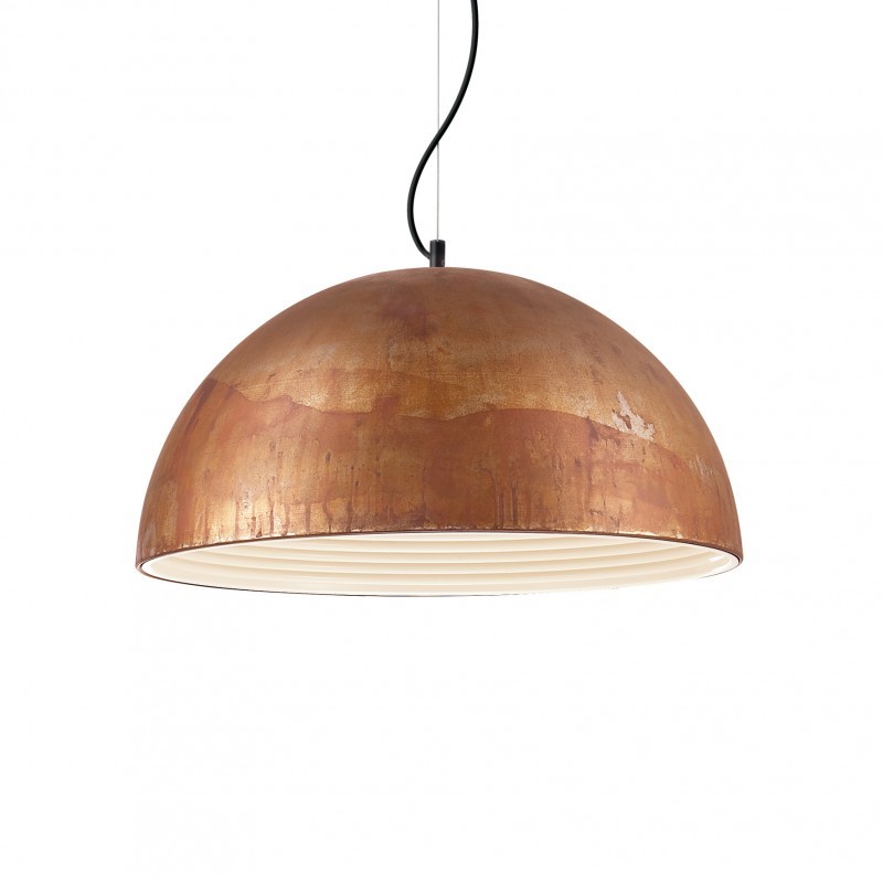 Jednoduchý velký závěsný lustr Folk s průměrem stínidla 50 cm z kolekce interiérového osvětlení designové italské značky Ideal Lux pro jedinečné nasvícení velké místnosti. Kovový difuzor je z vnější strany zdobený oxidovaným efektem, uvnitř je bíle smaltovaný s jemně vlnitým vzorem. Stropní...