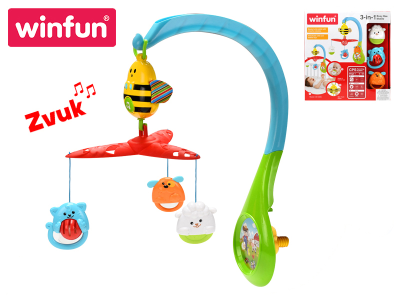 Kolotoč nad postýlku 50cm s chrastítky a kousátkem na baterie se zvukem 0m+ v krabičce