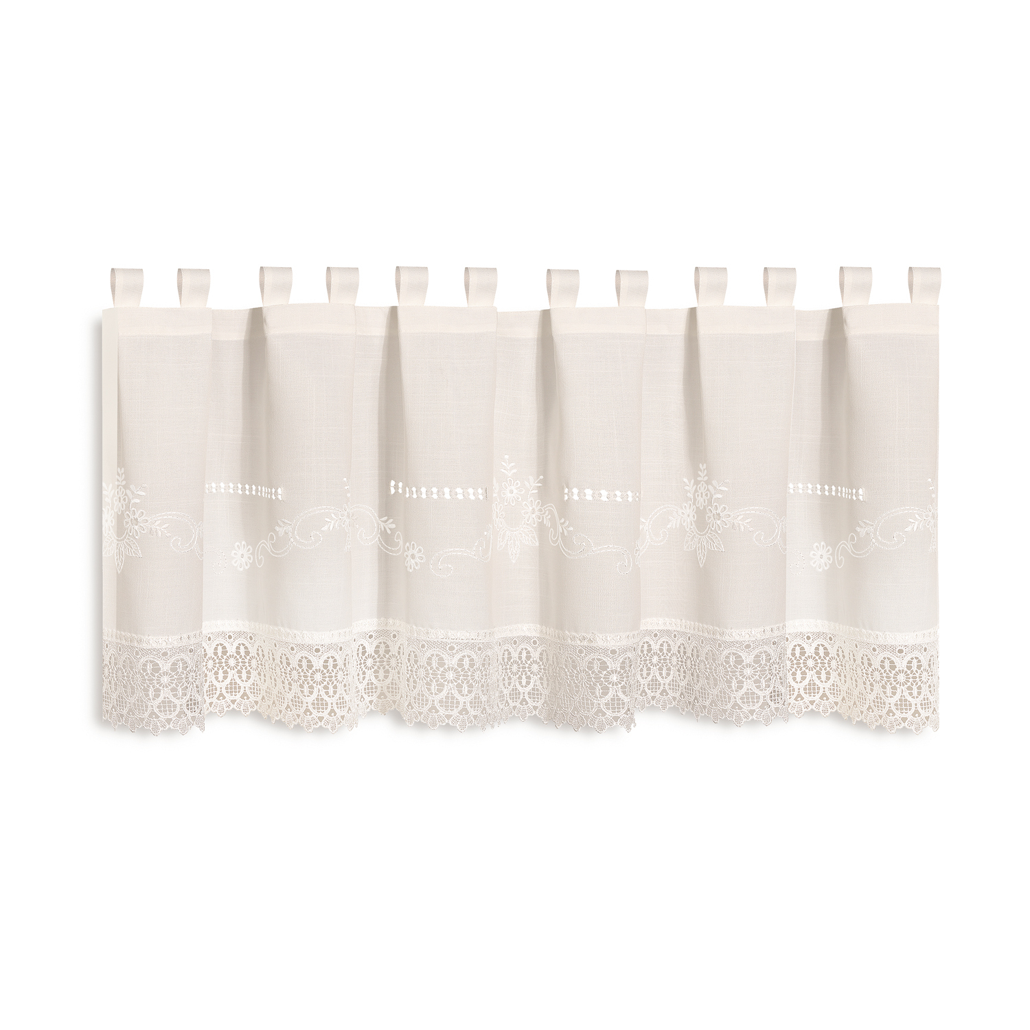 Závěs s poutky, bistro, vyšívaný - přírodní, 45 mm, 150 mm