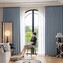 Modrý denim zatemňovací závěs, který je už připraven k pověšení.