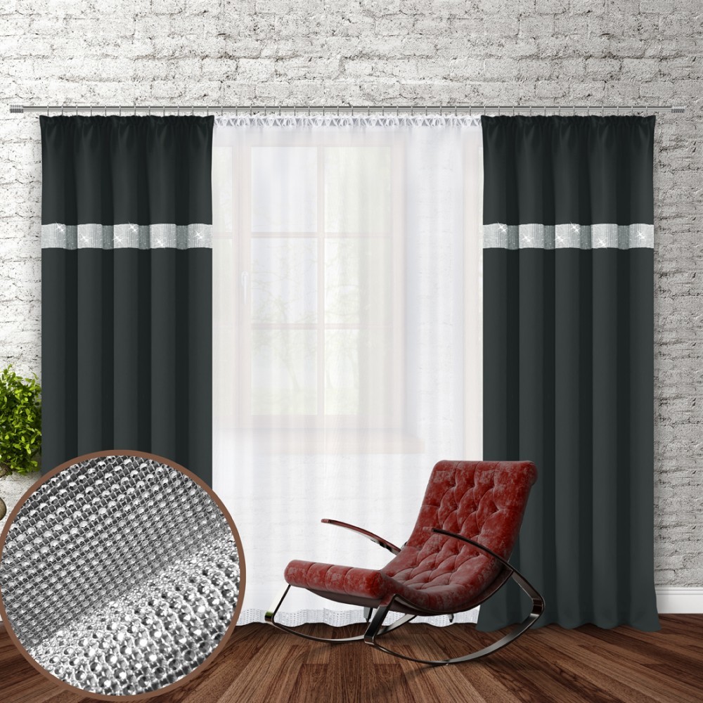 Dekorační závěs se zirkony s řasící páskou GLAM 250 grafitová 140x250 cm (cena za 1 kus) MyBestHome