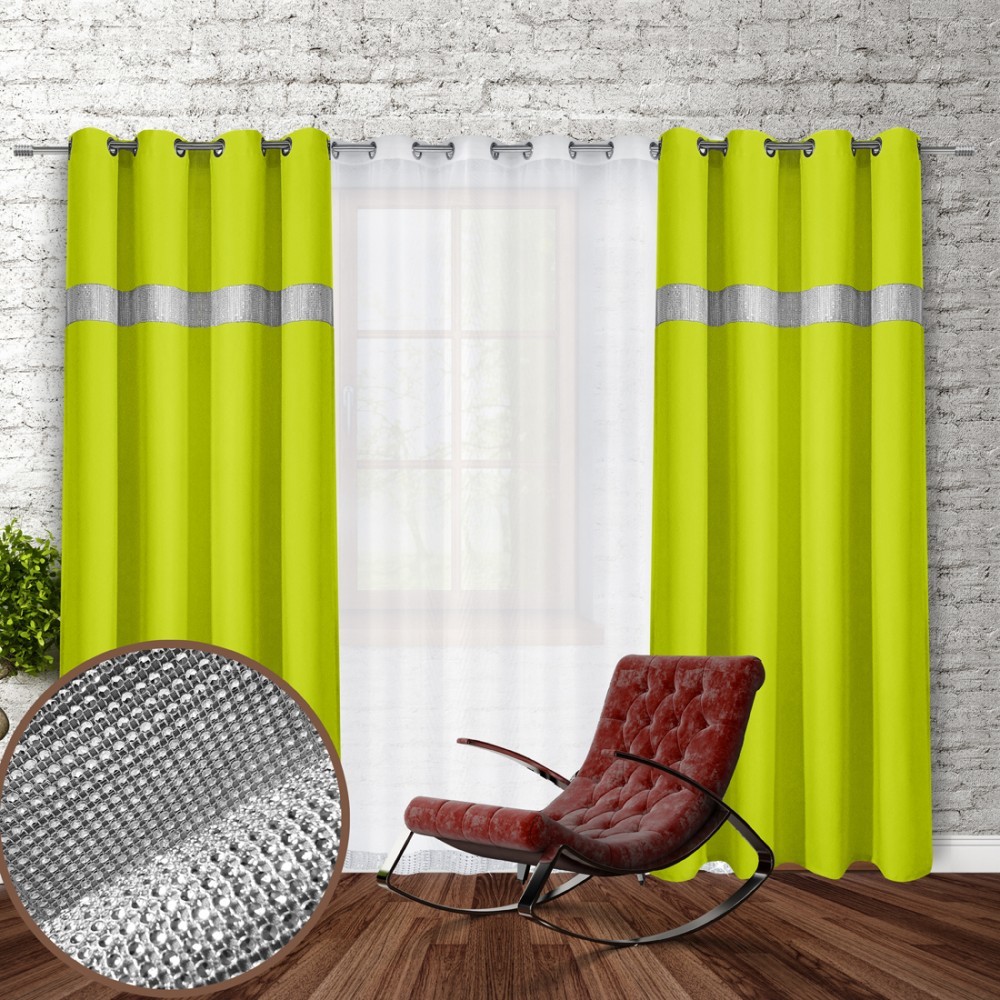 Dekorační závěs se zirkony s kruhy GLORY 250 limonka 140x250 cm (cena za 1 kus) MyBestHome
