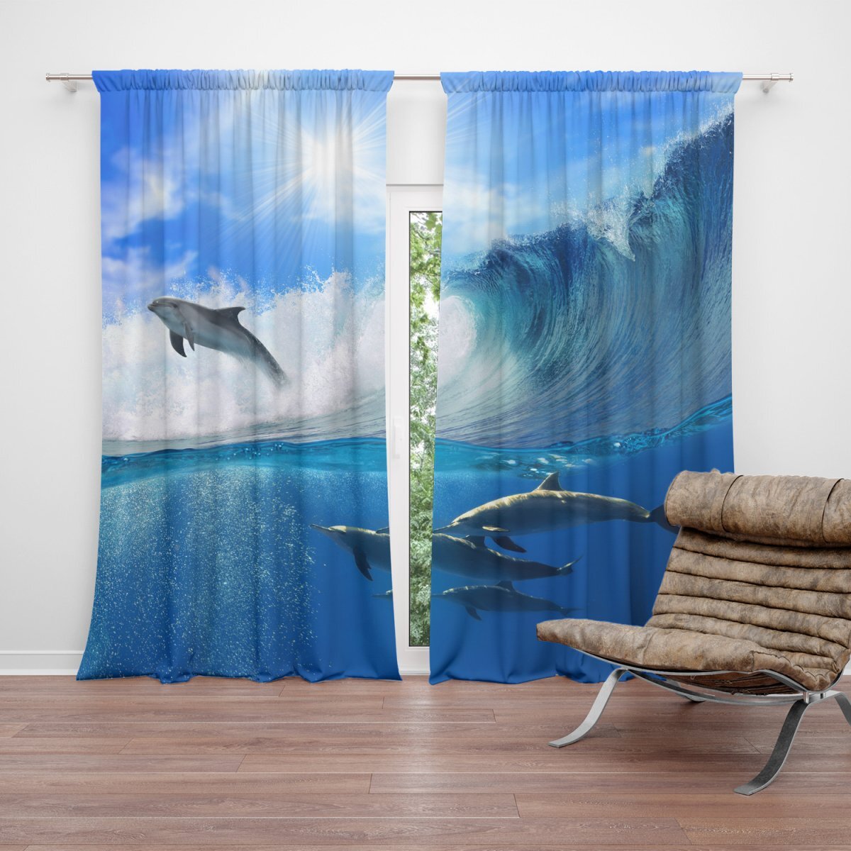 Závěs Delfíni ve vlnách: 2ks 140x250cm