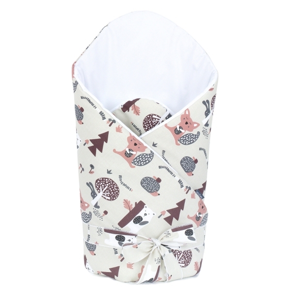 Bavlněná zavinovačka na zavazování - Lesní zvířátka, bílá/béžová
