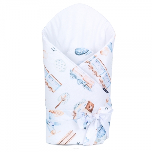 Bavlněná zavinovačka na zavazování, Vláček a letadlo, bílá/modrá