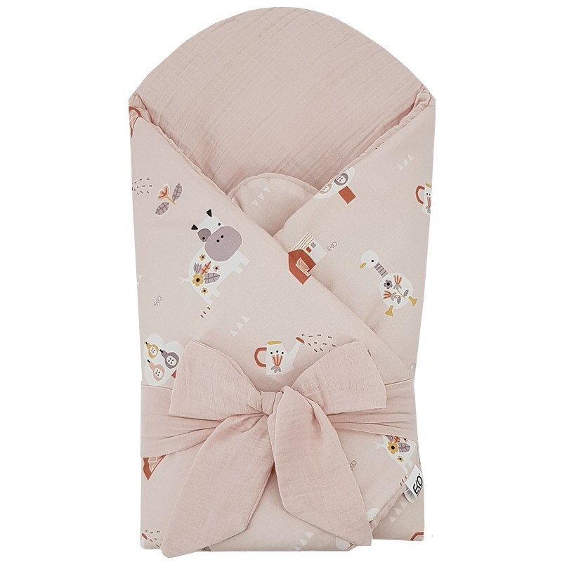 EKO Zavinovačka mušelínová s kokosovou vyjímatelnou vložkou My farma Muselin Powder pink 75x75 cm