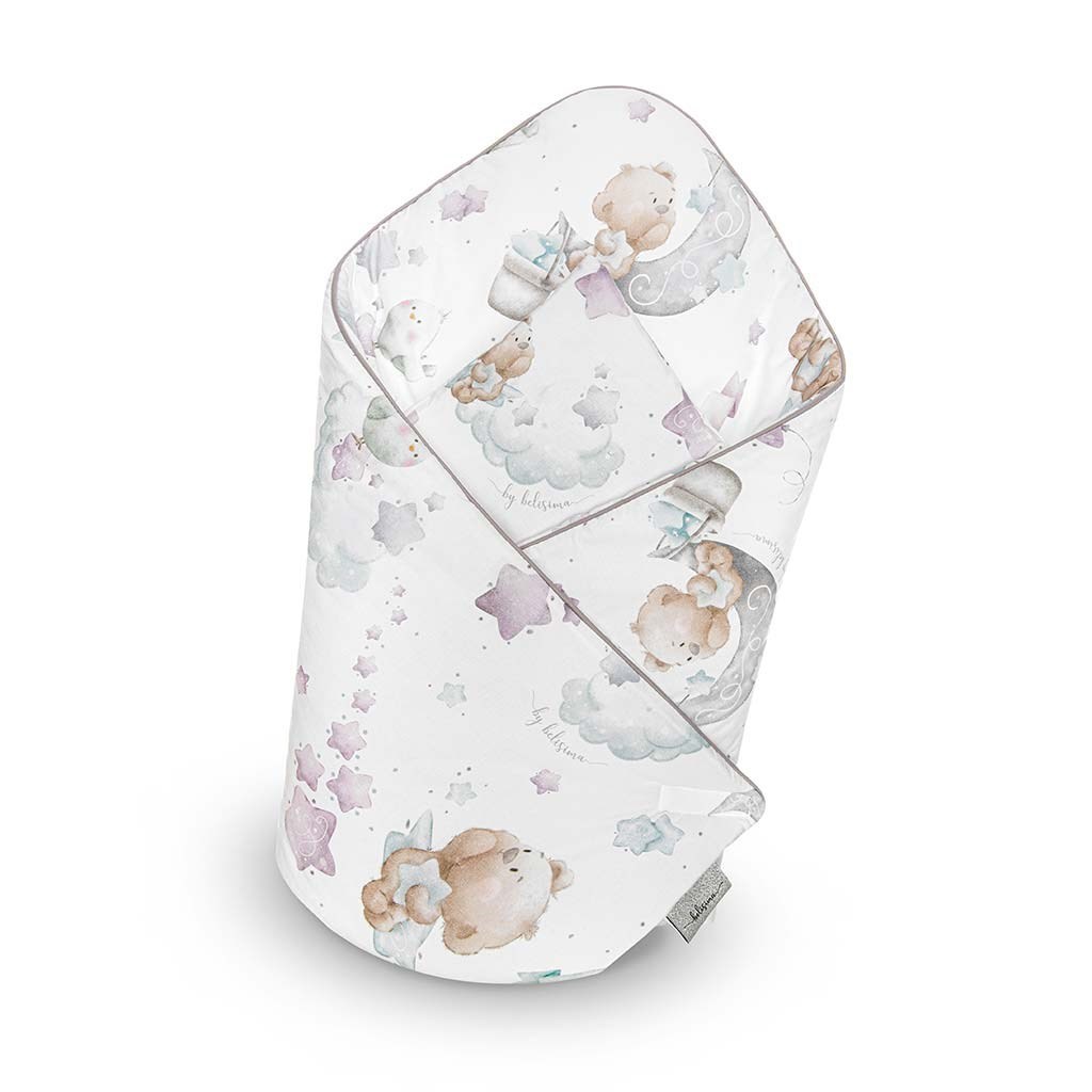Dětská bavlněná zavinovačka pro miminka Belisima Teddy on the moon. Zavinovačka je vyrobena z kvalitního a jemného materiálu, který zaručí vašemu miminku příjemné teplo. Je vyplněna kokosovou výztuží pro lepší držení. Výztuž lze před praním vyjmout. Zapínání na suchý zip. Rozměry cca 75x75 cm....