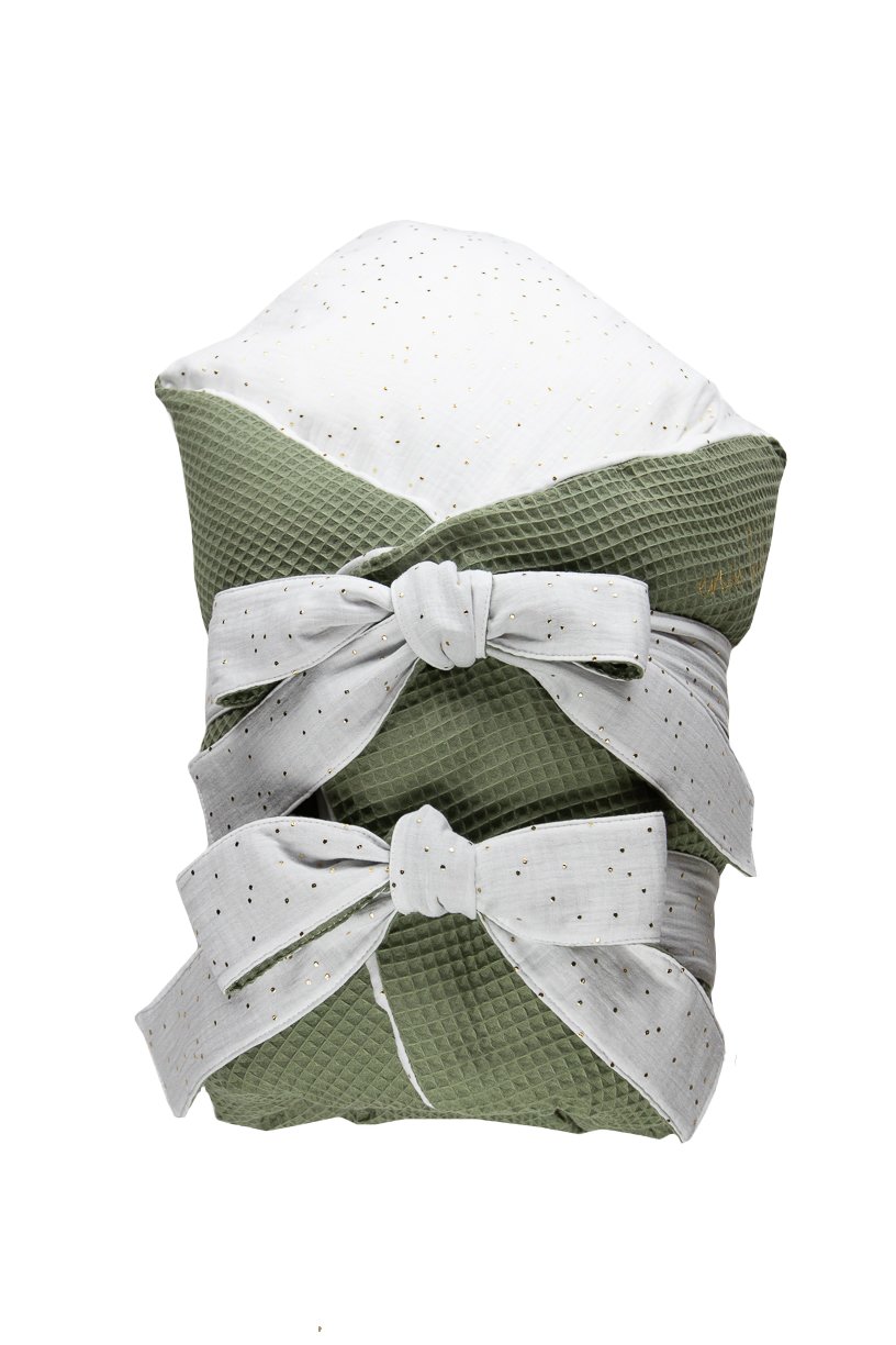 enie baby Péřová zavinovačka VAFLOVÁ khaki/bílá 80x80 cm