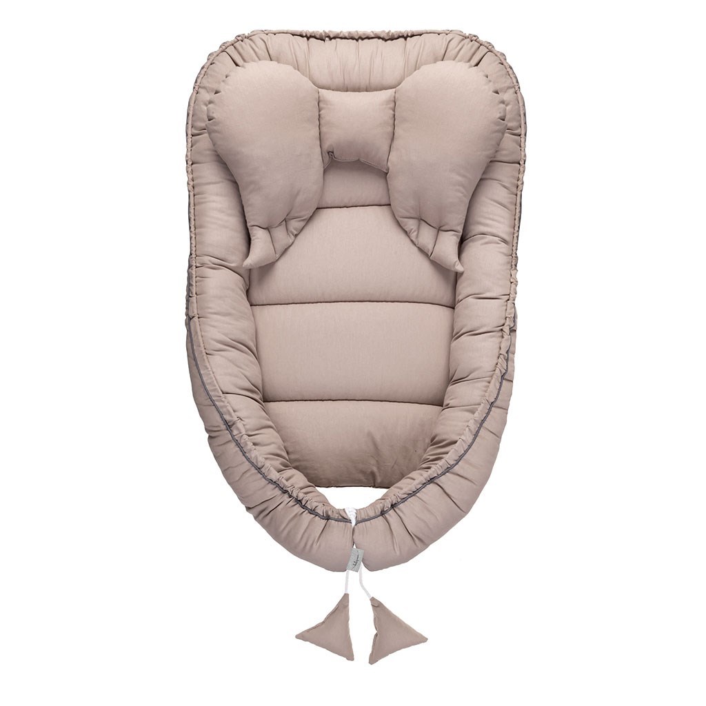 Hnízdo pro miminka Belisima Palermo. Navozuje miminkům pocit bezpečí, kopíruje tvar mámina těla a děťátko se tak cítí spokojeně jako u maminky v bříšku. Součástí hnízda je i stabilizační polštářek. Složení: 100% bavlna, výplň: 100% polyester. Rozměry: cca 55x75 cm, vnitřní rozměry: cca 35x59 cm.
