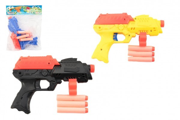 Plastová pistole (17cm, 3 různé barvy) + pěnové náboje 3ks