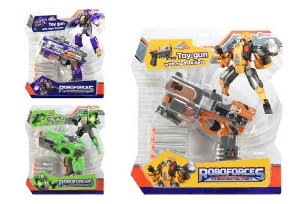Transformer robot/pistole na pěnové náboje plast 18cm asst 3 barvy na kartě