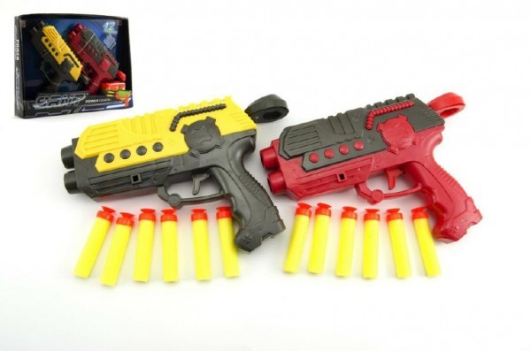 Pistole 2ks na pěnové náboje 19cm + 12 nábojů asst 2 barvy v krabici 33x25cm