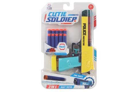 Pistole na vodu a na pěnové náboje. Z pistole lze střílet pěnové náboje nebo ji lze naplnit vodou a stříkat vodu. Součástí balení je 10 pěnových nábojů. Rozměry pistole cca 21 x 14,5 x 3 cm. Rozměry balení cca 21 x 32 x 4 cm. Věk 3+ prečítať celé
