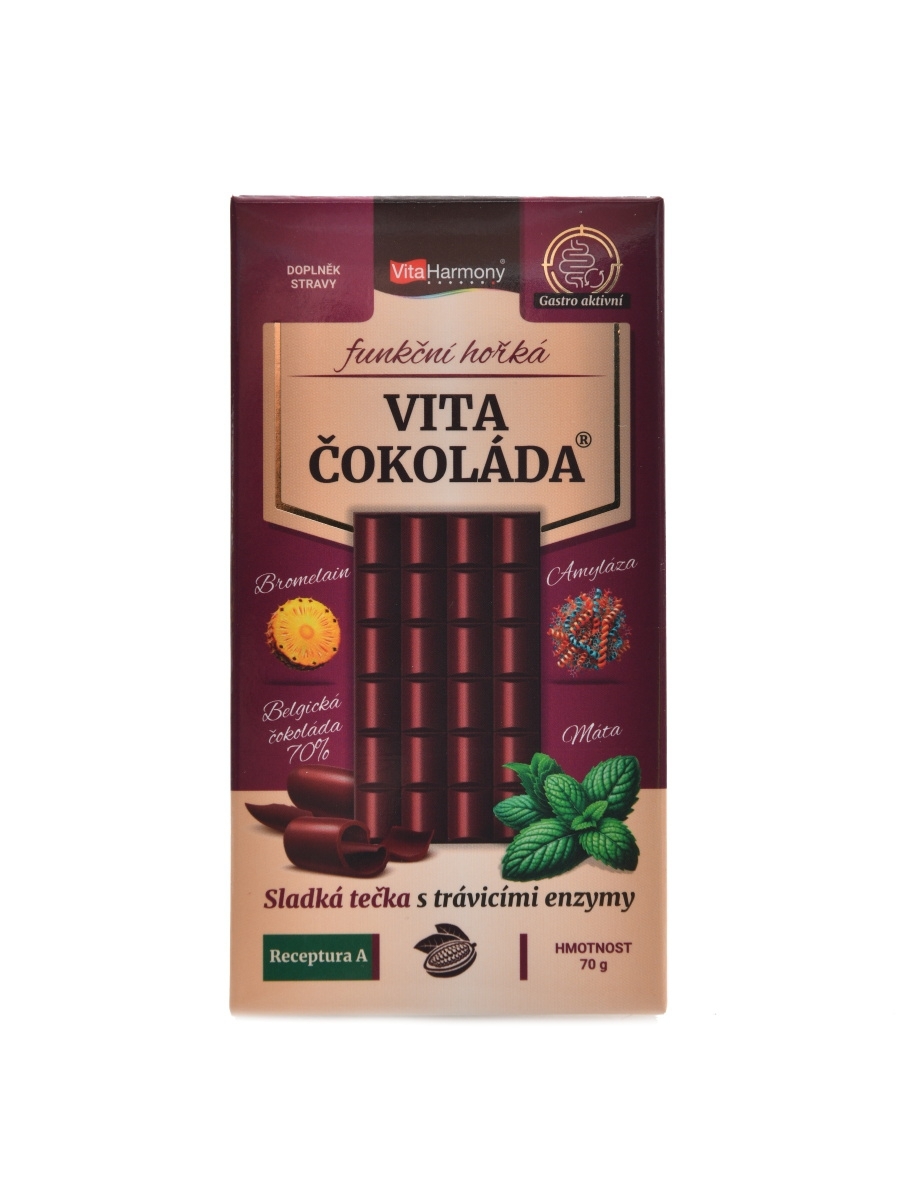 VitaHarmony - VitaČokoláda funkční hořká 70g receptura A - bromelain amyláza máta