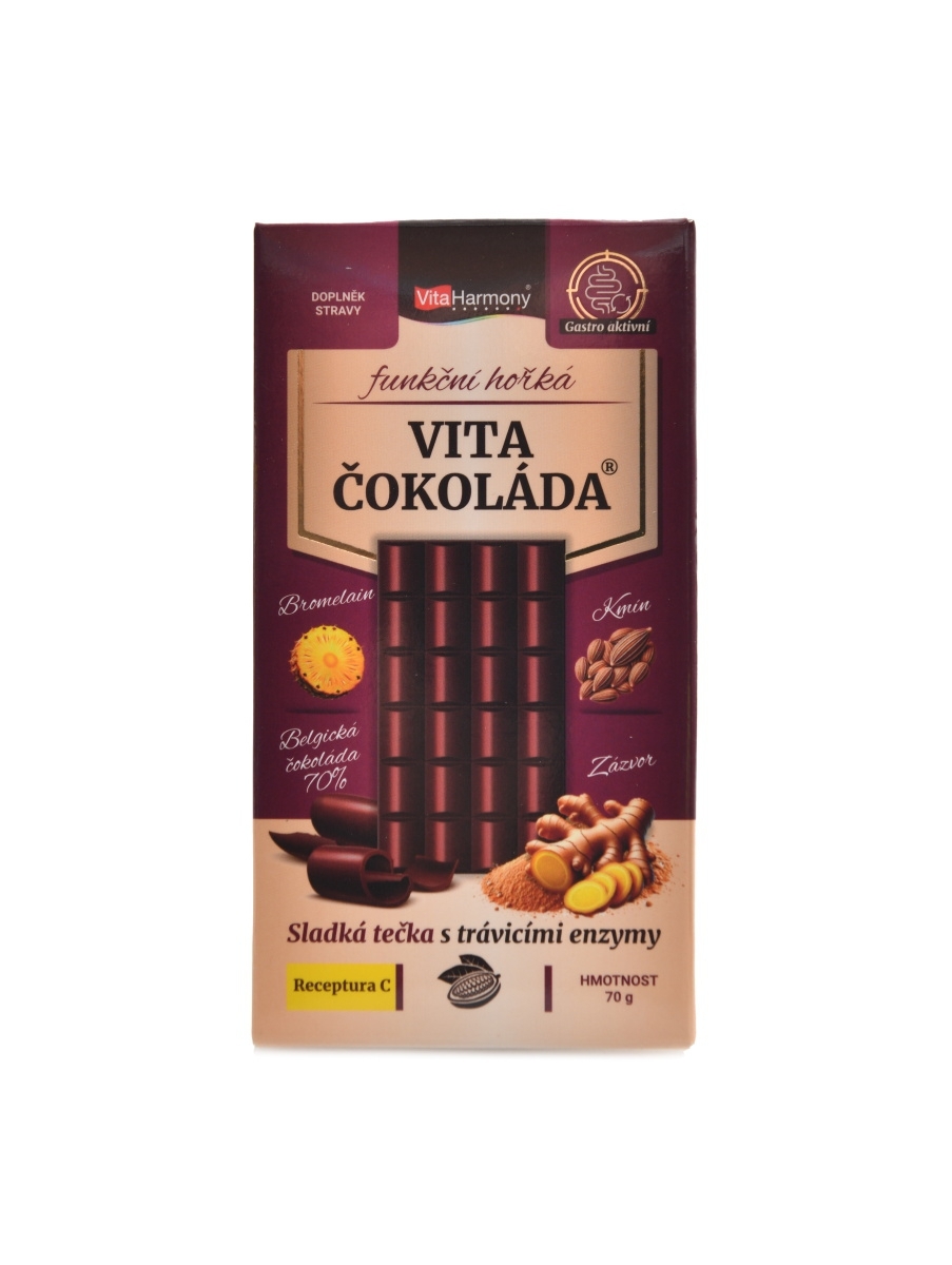 VitaHarmony - VitaČokoláda funkční hořká 70g receptura C - bromelain kmín zázvor