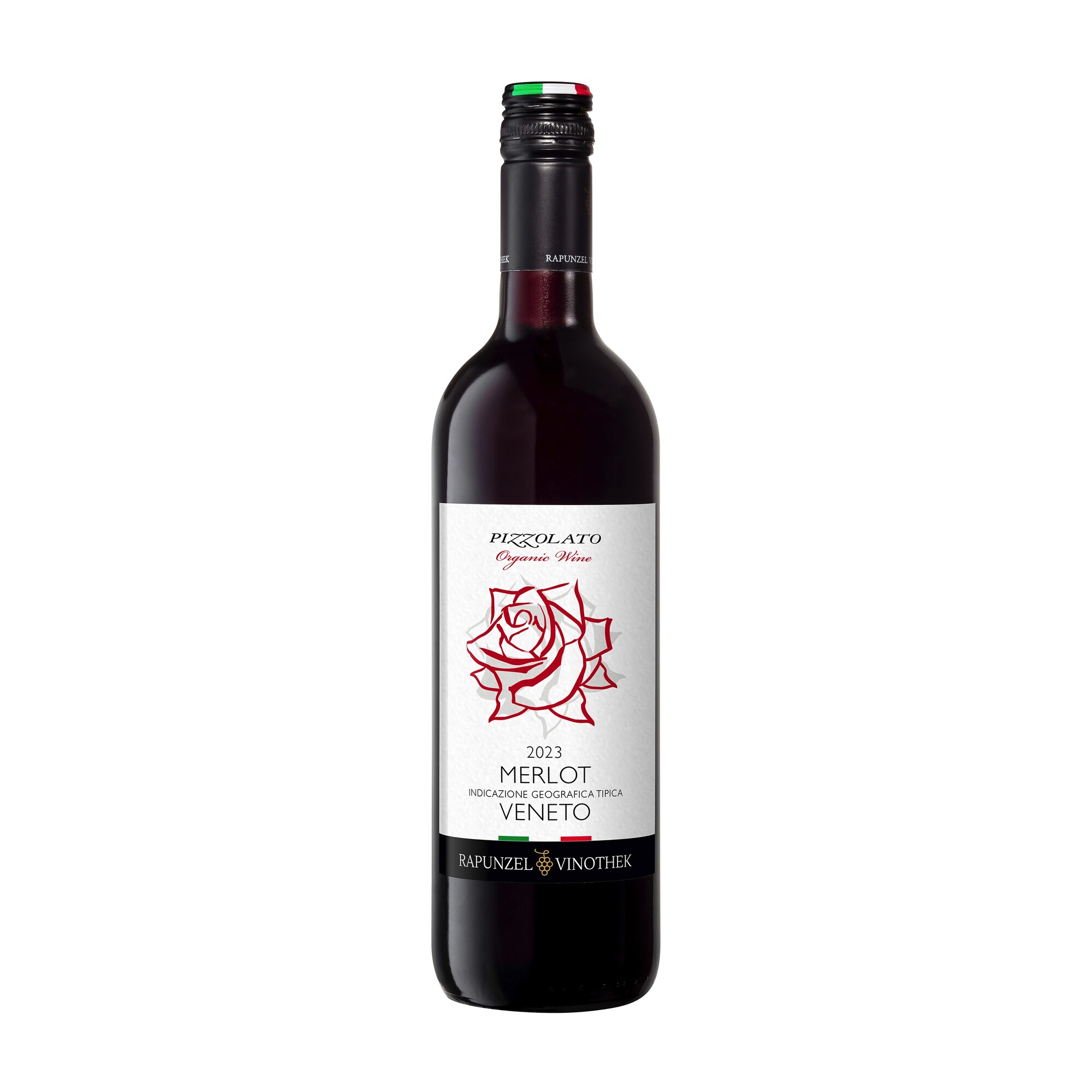 Červené víno odrůdy Merlot. Obsah alkoholu 12 % obj. produkt kontrolovaného ekologického zemědělství
