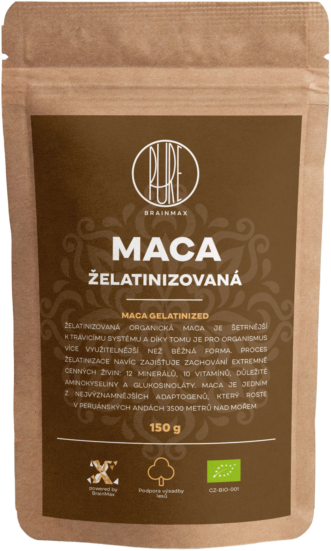 BrainMax Pure Maca želatinovaná BIO prášek, 150 g