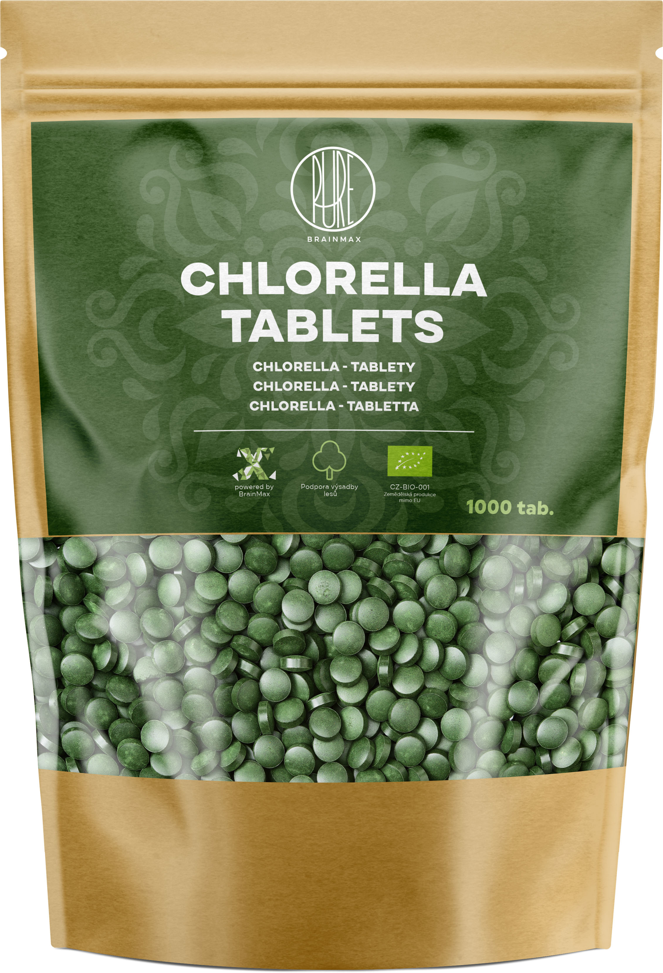 BrainMax Pure Chlorella Tablets, BIO, 1000 tabletChlorella je typická superpotravina, která pochází z Tchaj-wanu a Japonska. Je bohatá na fytonutrienty, včetně aminokyselin, chlorofylu, beta-karotenu, draslíku, fosforu, biotinu, hořčíku a vitamínu B. Zelená barva řasy je dána vysokou koncentrací...