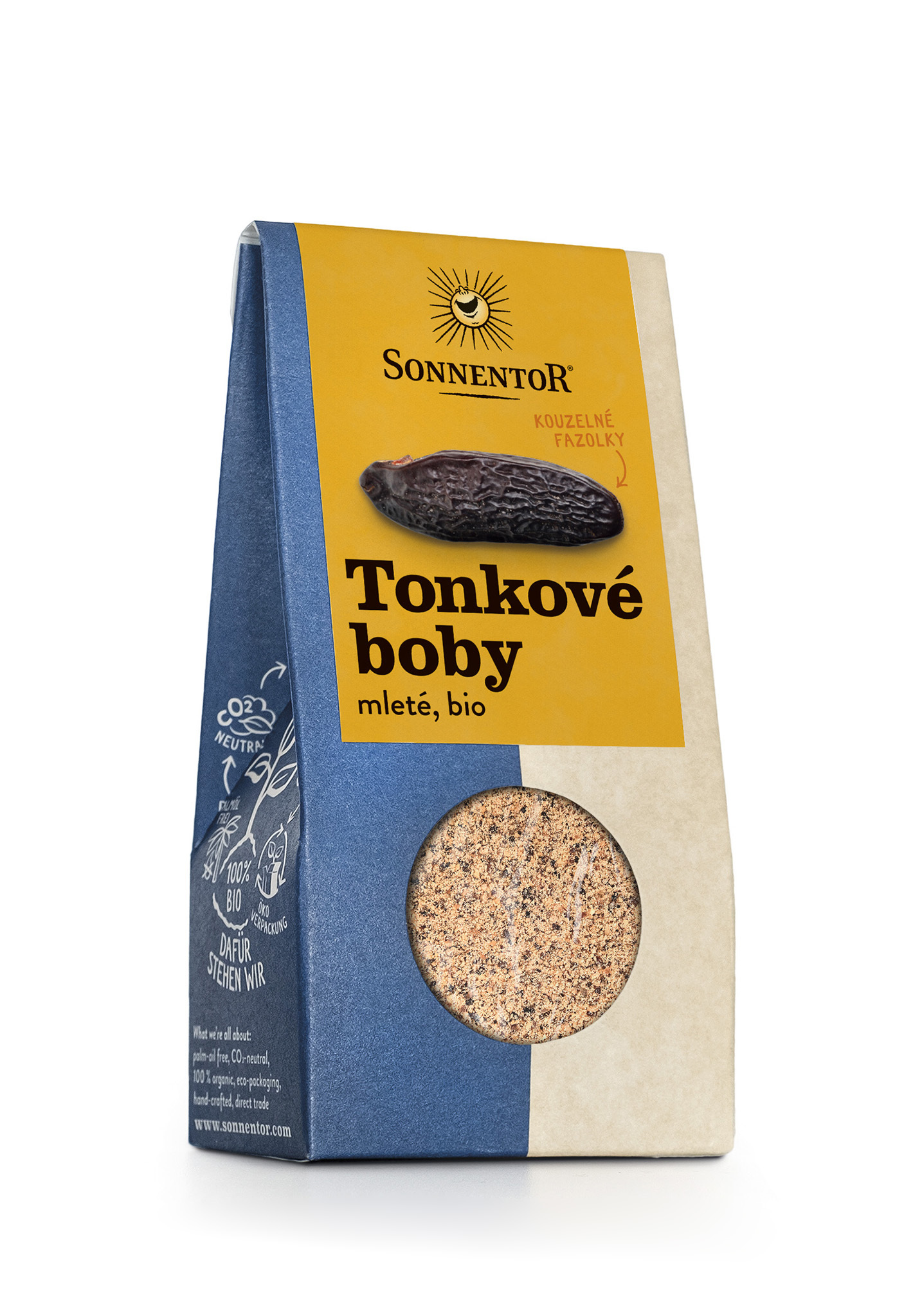 Tonkové bôby sú semená tropického stromu, známe tiež ako mexická vanilka alebo tonka. Pestované ekologicky, zaručujú čistotu a kvalitu. Vďaka mletej forme je ich použitie veľmi praktické a stačí ich skutočne malé množstvo - spravidla špička noža postačí na výrazné ochutenie vašich pokrmov. Perfektne ladia s pudingami, zmrzlinami, mliečnou ryžou, sušienkami i koláčmi.