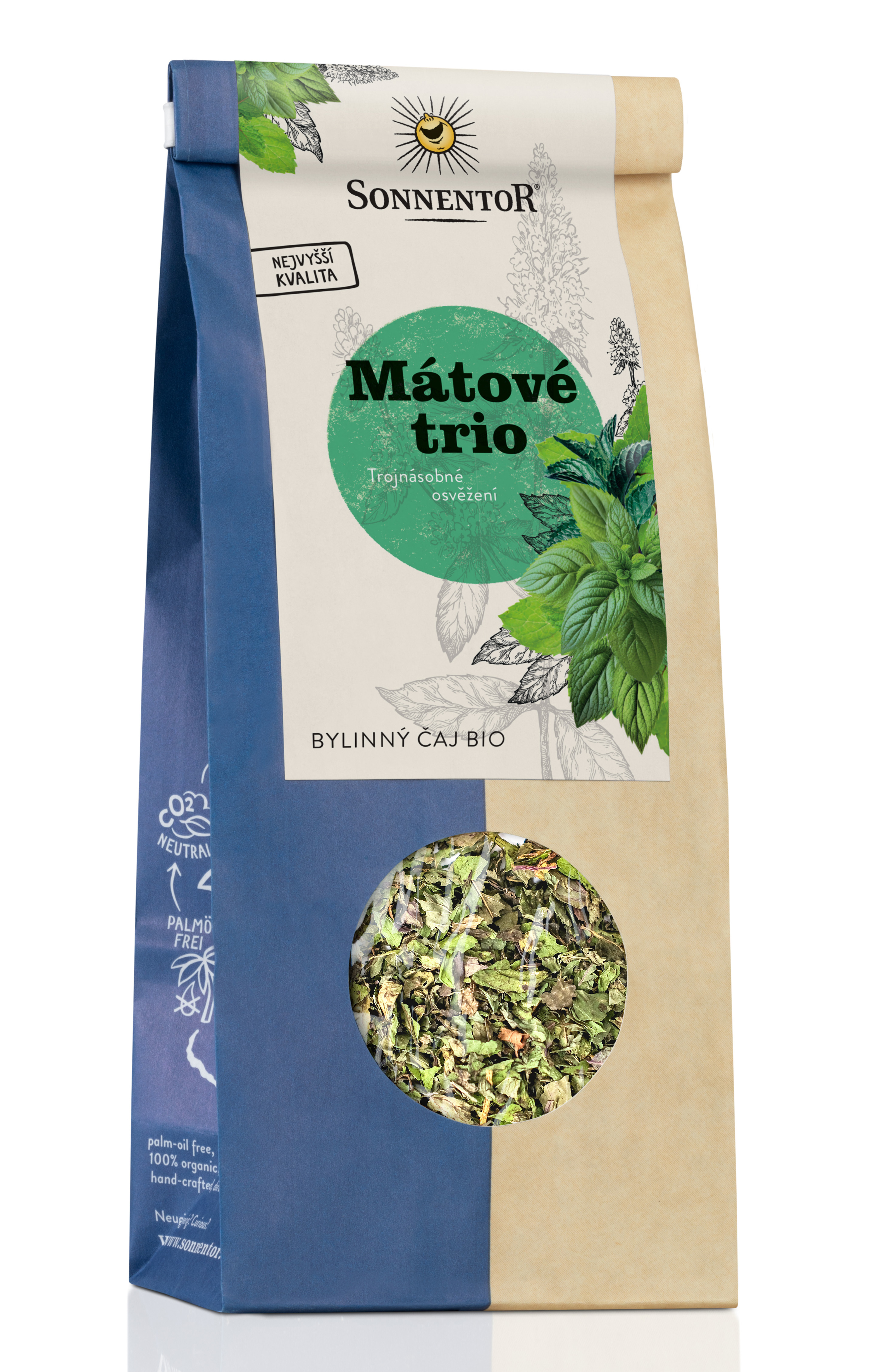 Mátové trio bio 50 g syp. od výrobce Sonnentor. Produkt v bio kvalitě. Pěstováno metodou ekologického zemědělství.Toužíte po opravdovém osvěžení? Seznamte se s tímto znamenitým triem máty peprné, čokoládové a kadeřavé. Rozehraje ve vašem šálku symfonii svěžích chutí a vůní! I když se máta v...
