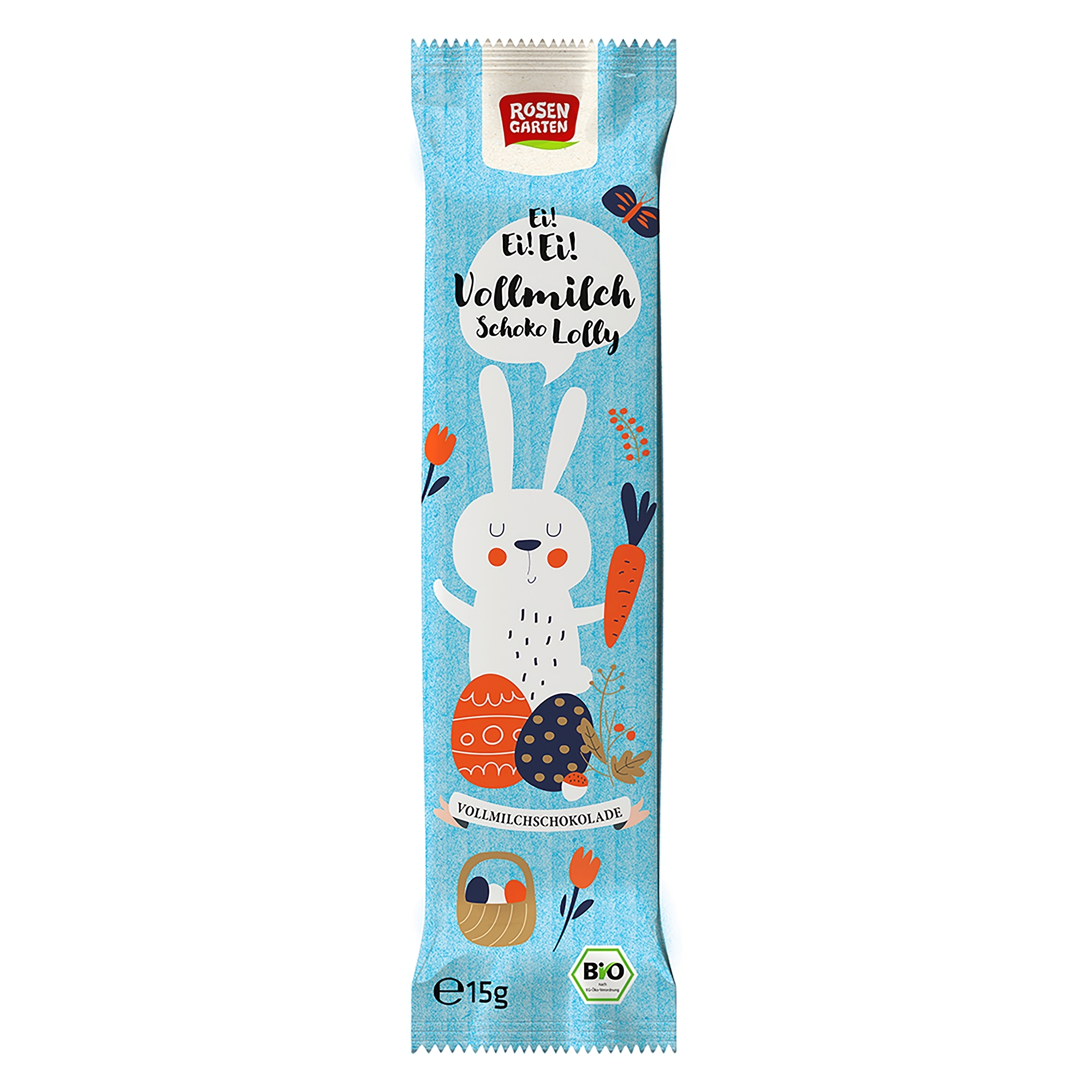 Lízátko mléčná čokoláda zajíček 15 g BIO ROSENGARTEN