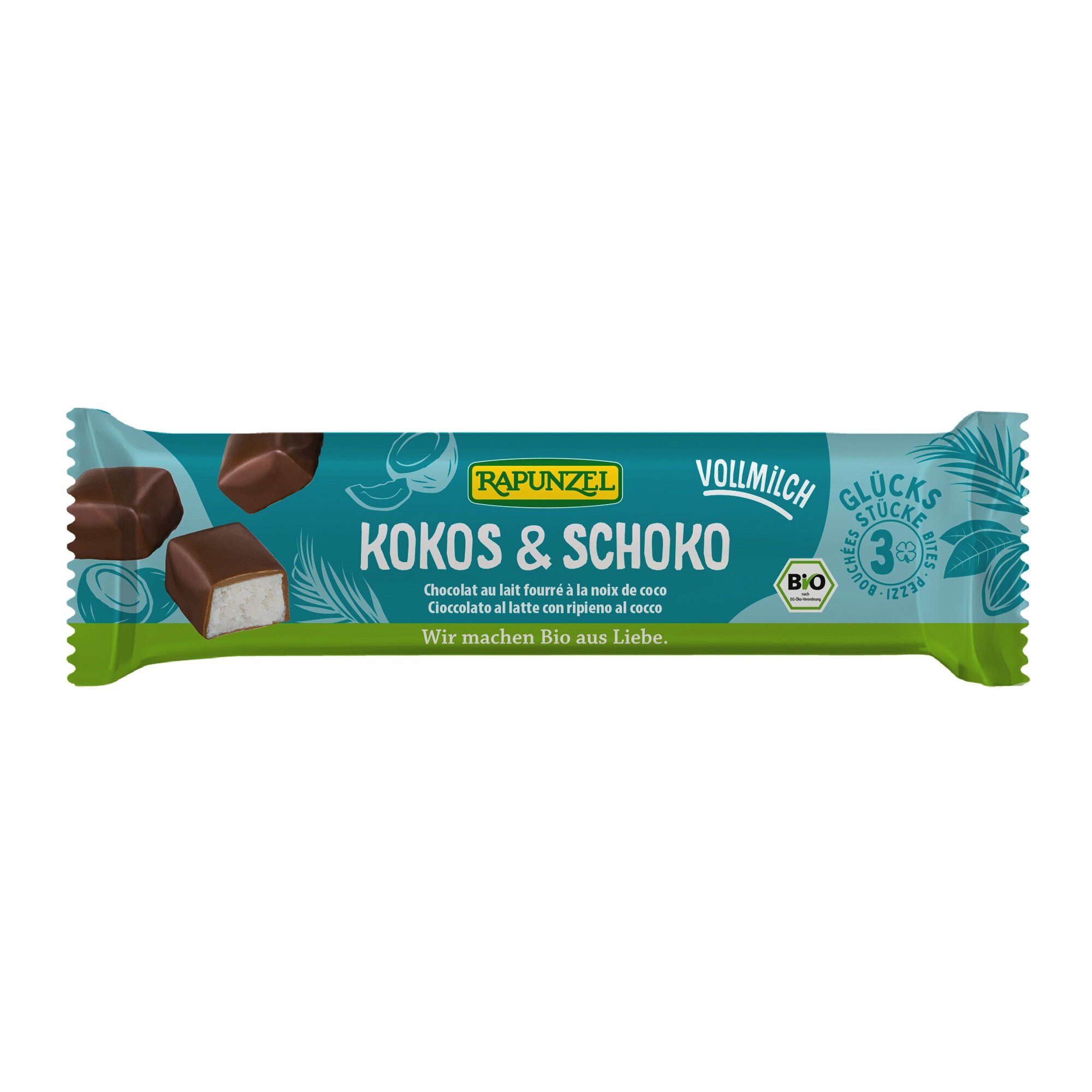 Kokos 36 %, mléčná čokoláda 25 % (třtinový cukr, kakaové máslo, sušené PLNOTUČNÉ MLÉKO, kakaová hmota, kakaová sušina 41 %), rýžový sirup, agávový sirup, sušený rýžový sirup (rýžový sirup, slunečnicový olej, sůl), rýžová mouka. Může obsahovat stopy lepku, skořápkových plodů, sezamu a sóji....