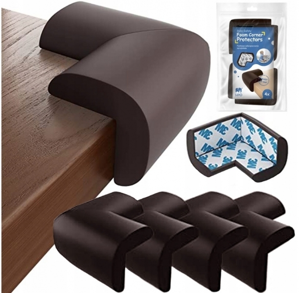 Snadno a rychle sestavitelné pěnové kryty rohů stolu, desky, nábytku, schodů, skříní nebo jiných typů nábytku..ezpečnostní pěnová ochrana na hrany nábytku pro větší bezpečí dětí. Chrániče rohů jsou vyrobeny v černé, hnědé nebo ecru barvě. V balení najdete 4 kusy chráničů. Páska se snadno lepí na...