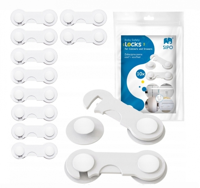 Bezpečnostní dětská pojistka na skříňky 10 ks, bílá