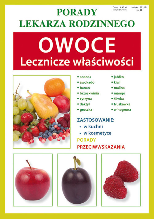 Poznaj właściwości lecznicze najpopularniejszych owoców, a także ich zastosowanie w kuchni i kosmetyce. Poradnik skierowany jest do każdego, kto chce zadbać o swoje zdrowie i pragnie uważniej przyjrzeć się codziennej diecie. Polecamy również poradnik „Warzywa. Lecznicze właściwości”.